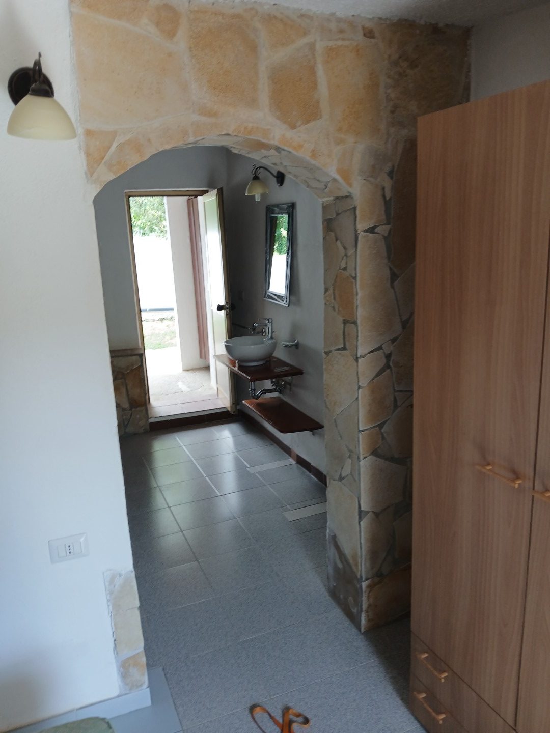 Bilocale con giardino privato retrostante di esclusiva pertinenza dell’alloggio delimitato con mura di h. 2 mt (massima privacy!) ove sono allocati i servizi privati (wc, lavabo, bidet) + la doccia estiva.